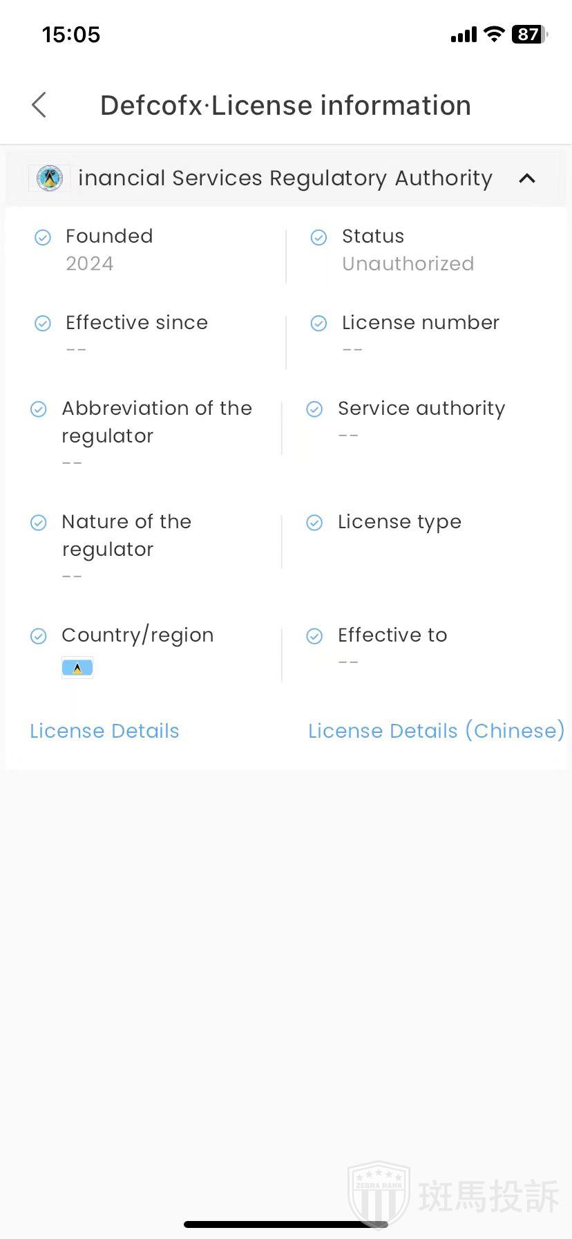 Defcofx,在FxGecko显示1家监管信息。持有的圣卢西亚FSRA监管状态为无监管。投资者资金安全无保障!
