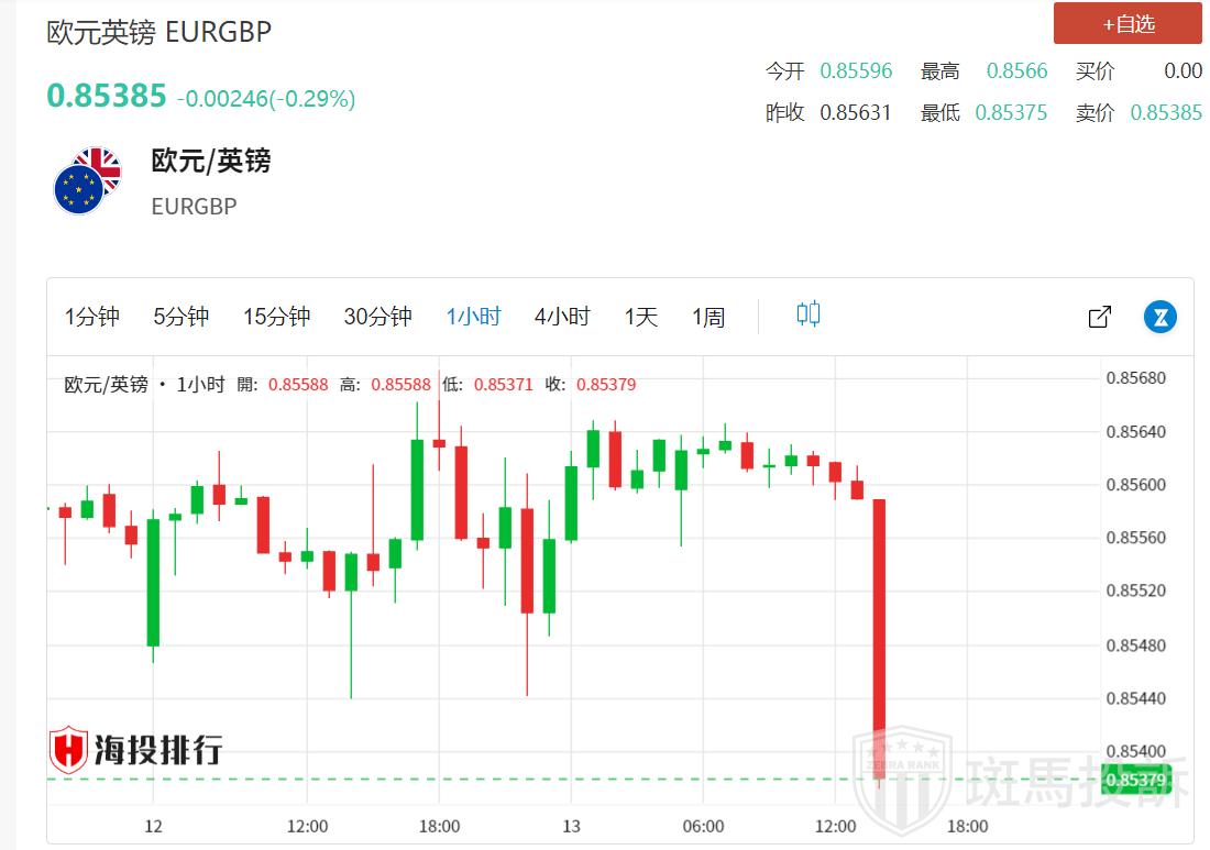 周二欧洲时段,欧元/英镑下滑至0.8540附近,当日下跌0.20%。