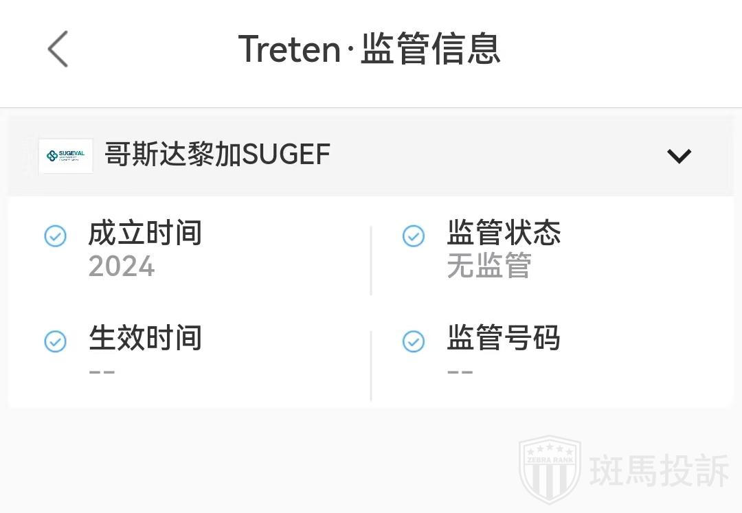 据查询,哥斯达黎加SUGEF指出,Treten平台未在本委员会的相应登记处注册,因此未获提供投资服务或从事SUGEF监管范围内的其他活动的授权。望投资者警惕。