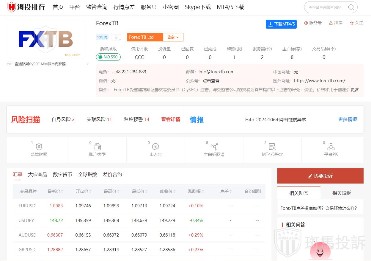 ForexTB是一家成立于2020年的外汇经纪公司,提供各种外汇交易服务。根据Forex Wink的评论,ForexTB在市场上的声誉稳定,具有一定的弹性和可靠性。该公司在严格的监管准则下运作,确保了一定程度的可信度和可靠性。ForexTB遵守各个金融监管机构制定的标准,保障客户资金的安全,并参与投资者赔偿计划,为客户的投资提供额外的保障。