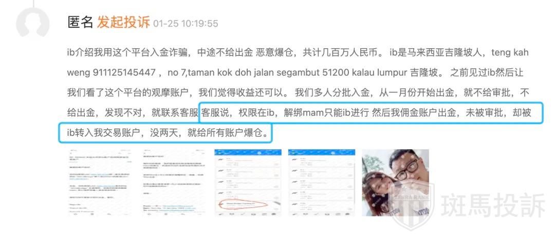 最让人气愤的是,有用户反映,自己申请佣金账户的出金时,资金并未被平台审批通过,反而被IB直接转入了交易账户。这一操作无疑让投资者的资金处于更高的风险之中。结果是,没过几天,IB的操作直接导致所有账户爆仓,投资者不仅未能取回本金,甚至连盈利也化为乌有。