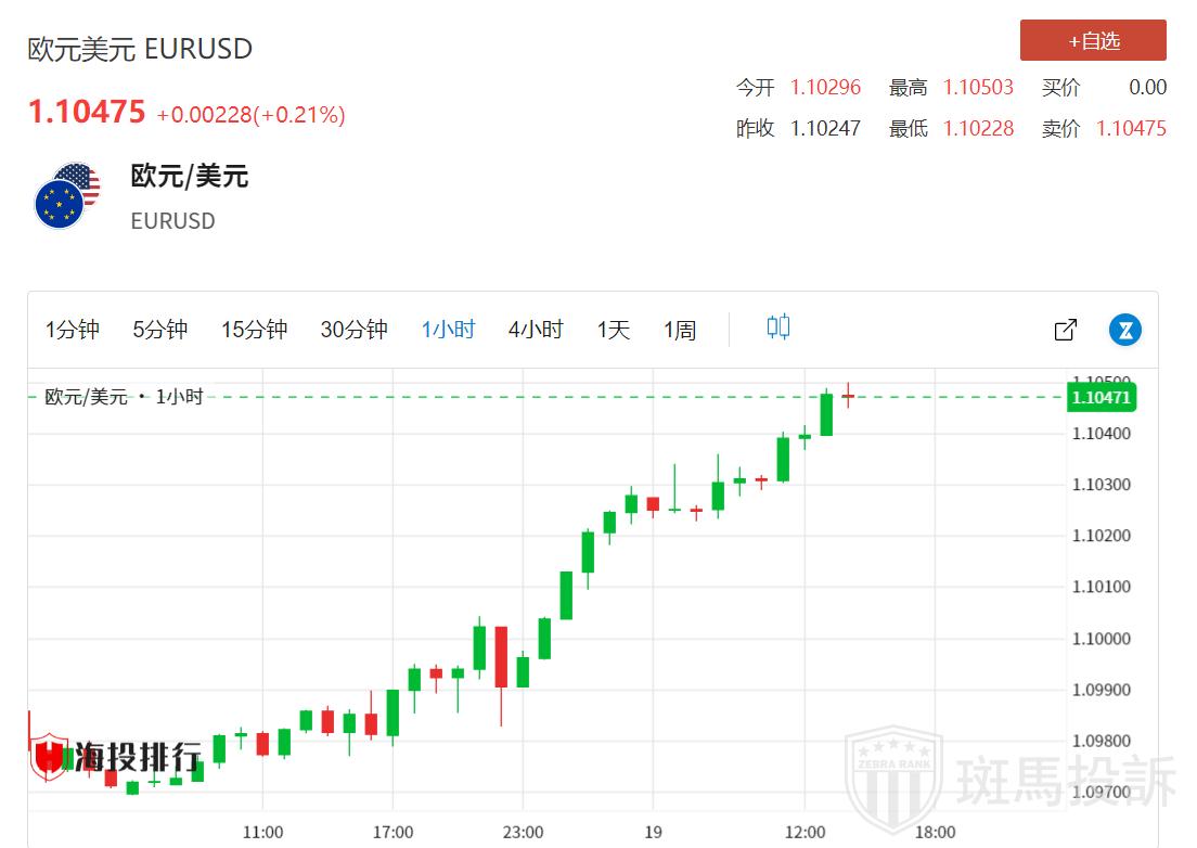 周一欧市早盘,欧元/美元震荡走高,接近年内最高水平1.1040附近。