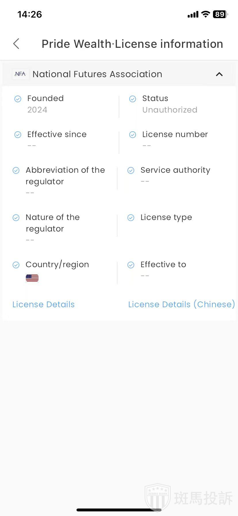Pride Wealth,在FxGecko显示1家监管信息。持有的美国NFA监管状态为超限经营。投资者资金安全无保障!