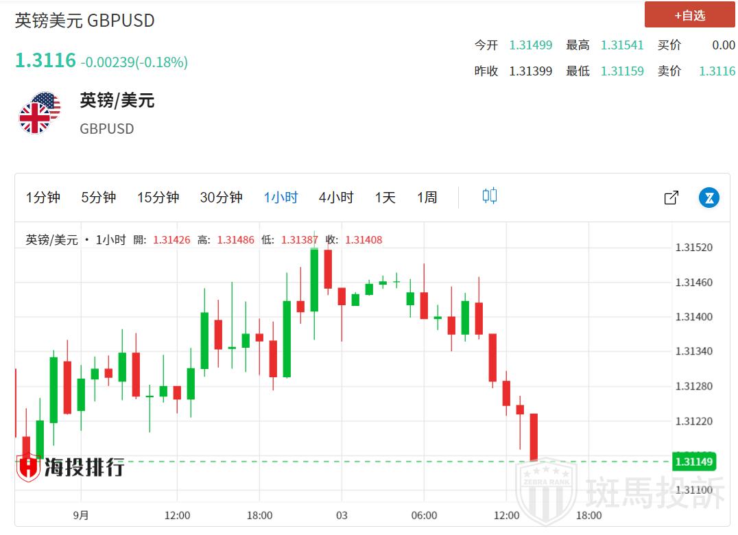 周二欧市早盘,英镑/美元下跌至1.3125附近
