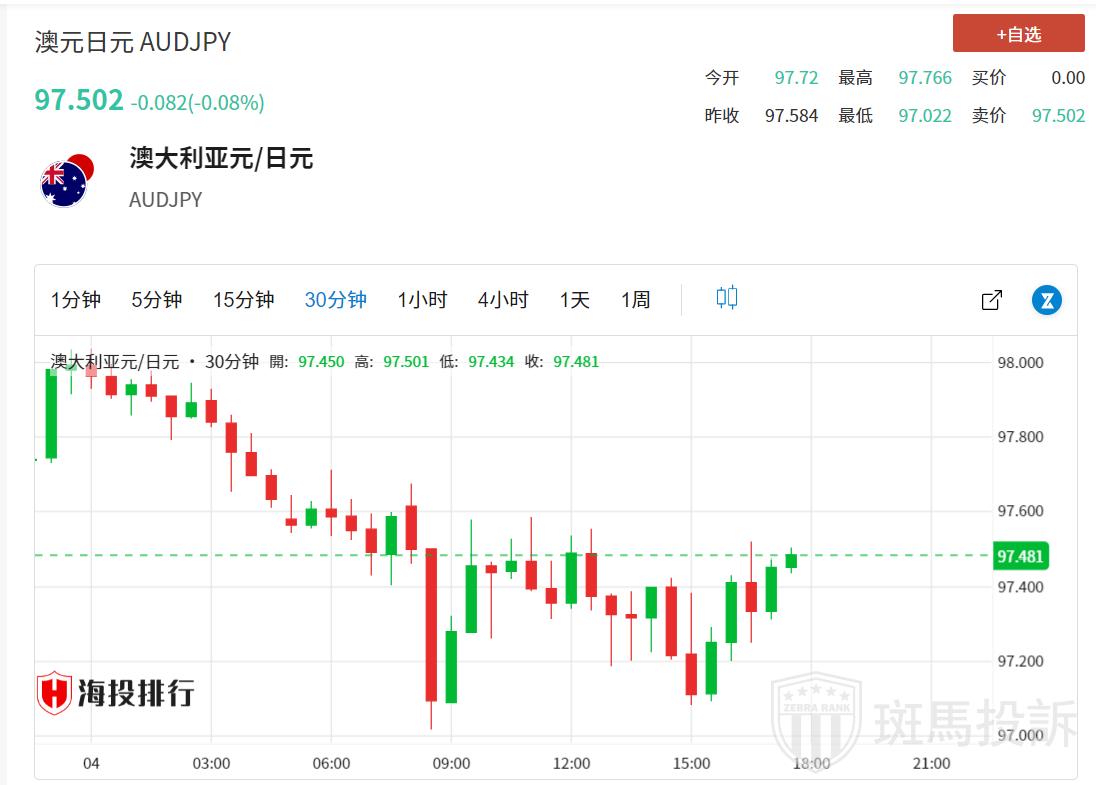 周三日本Jibun银行服务业采购经理人指数(PMI)公布后澳元/日元扩大跌势