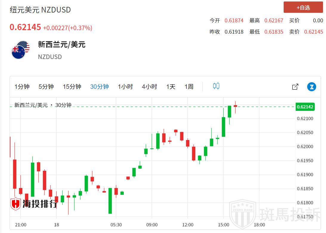 周三欧洲早盘时段,纽元/美元走高至0.6200附近。纽元/美元上扬可能是由于在联邦公开市场委员会(FOMC)定于周三召开货币政策会议之前风险情绪的改善。