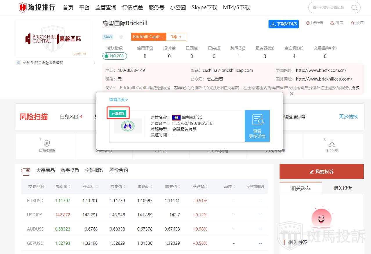 此外,赢磐国际曾经获得伯利兹IFSC牌照,这表明它在一定程度上得到了监管机构的认可。然而,也有信息显示赢磐国际已撤销伯利兹IFSC金融机构的监管。