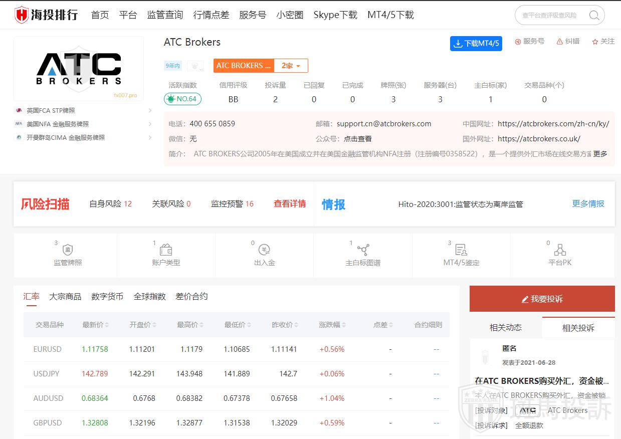 5.评价与反馈:根据不同的评价来源,有用户反馈在ATC Brokers的资金被锁定无法提取,甚至出现了账户被关闭的情况。一些用户表示,该公司反应迅速,提款过程顺畅,但会收取非活跃账户费用。