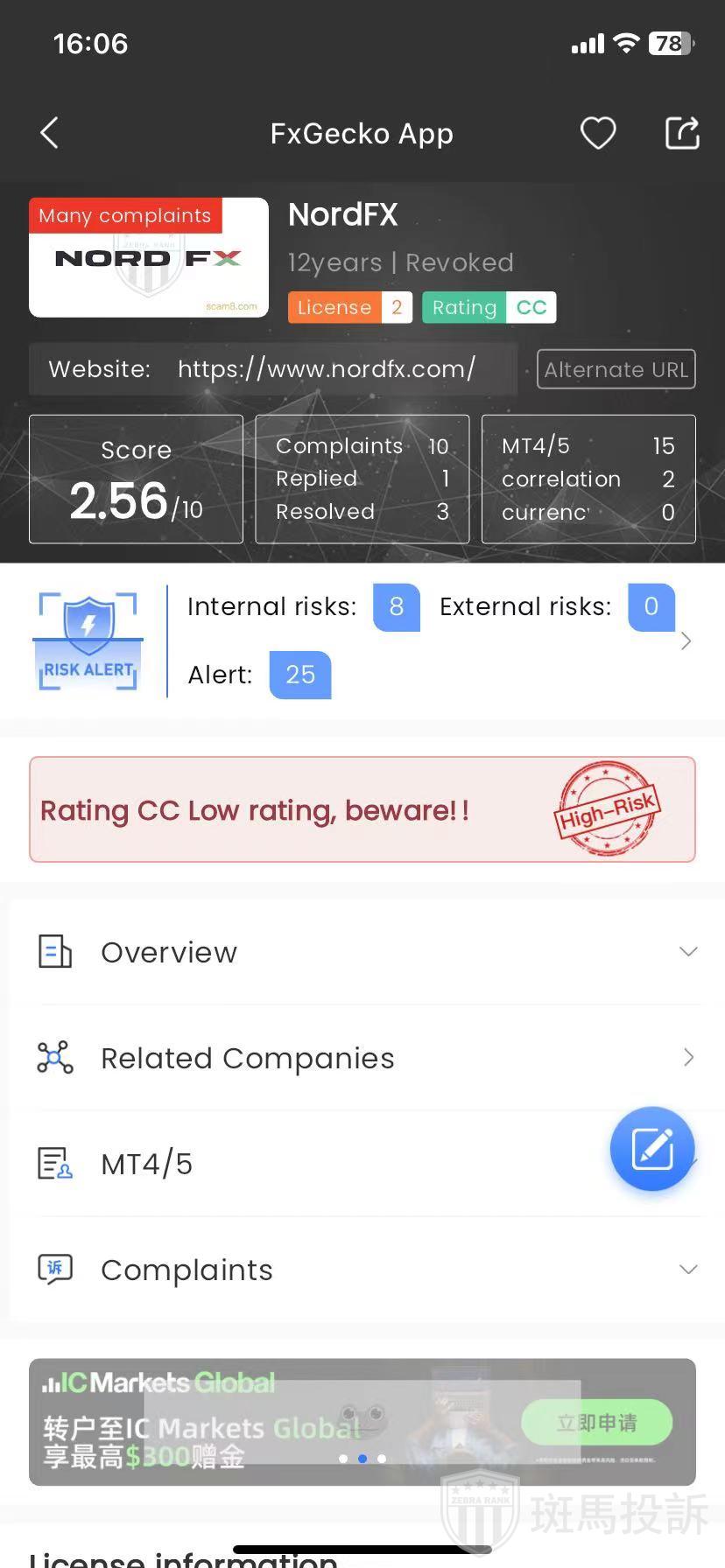FxGecko风险提示:NordFX外汇平台监控预警25条。注意提前预警!