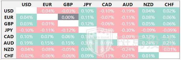 热图显示了主要货币对的波动百分比变化。基准货币从左列中选取,报价货币从顶行中选取。例如,如果投资者从左列选择欧元,然后沿水平线移动到日元,方框中显示的百分比变化即为欧元/日元波动。