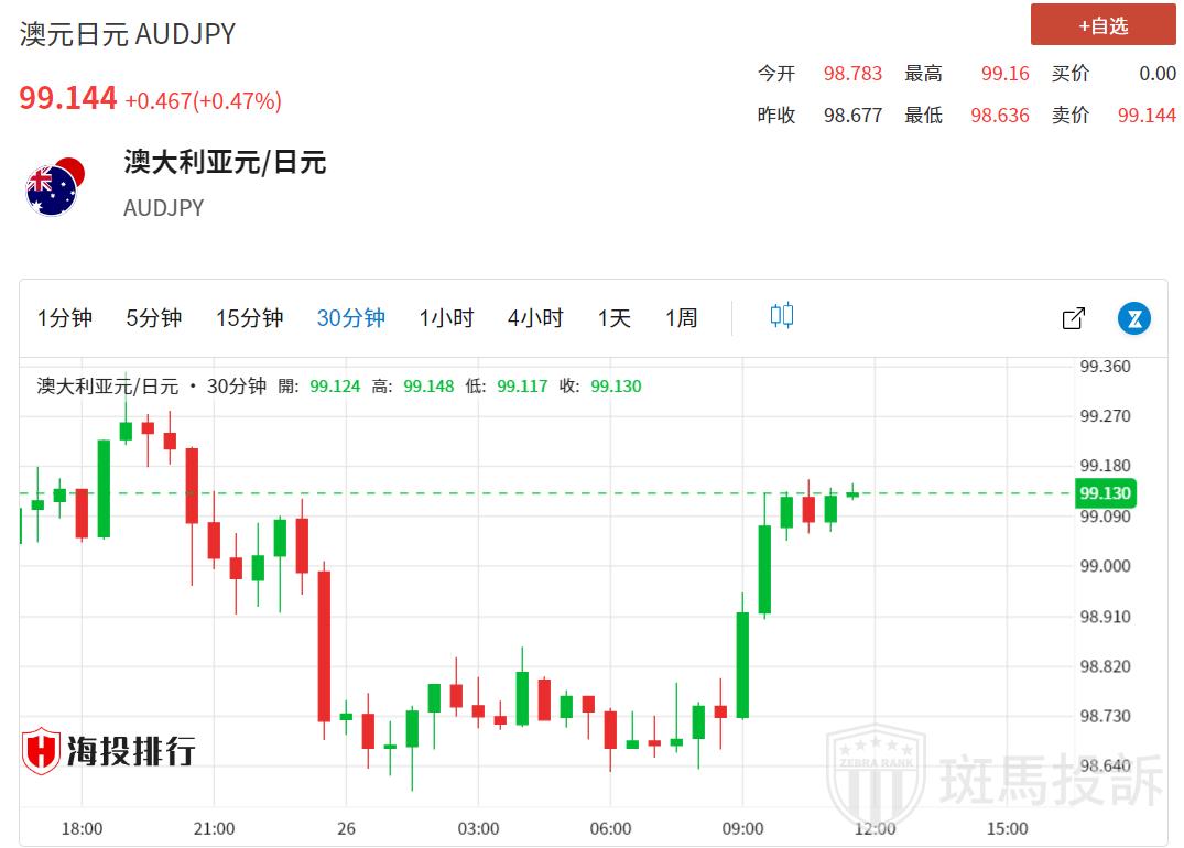 周四亚洲时段,澳元/日元叉盘吸引了一些逢低买盘,并最新跳回99.00关口上方,但仍遇阻前一天触及的三周高位。