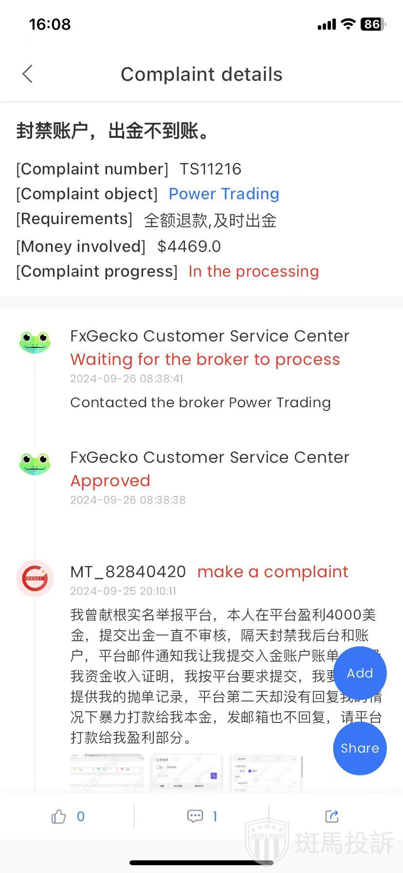 最近,有投资者通过FxGecko APP投诉Power Trading出金不到账!
