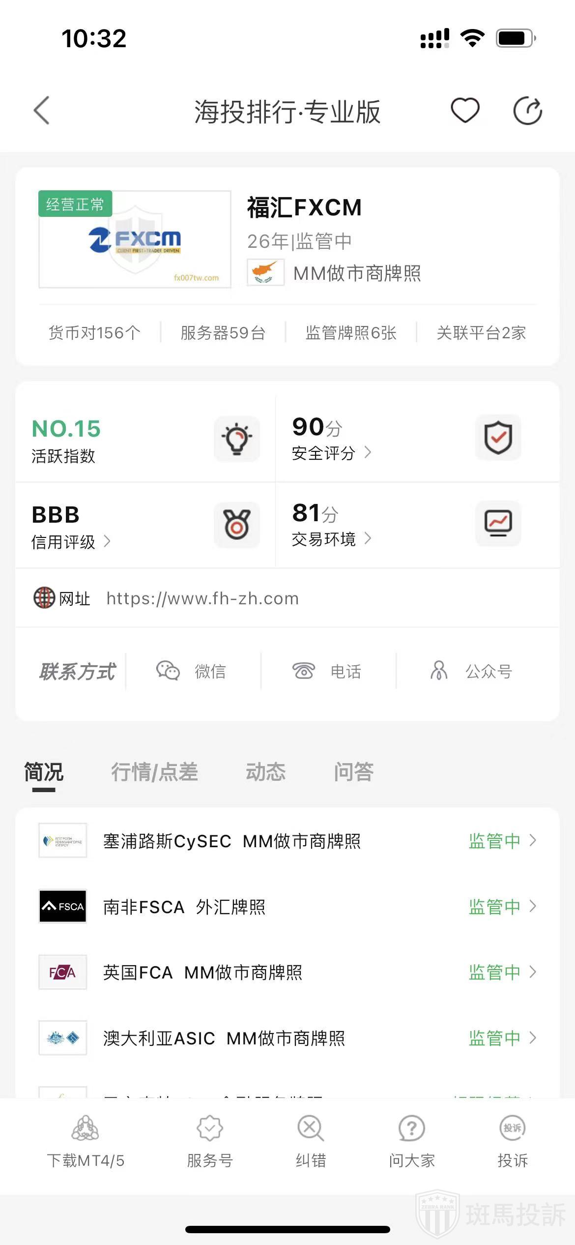 海投排行综合点评:福汇FXCM目前官网属于正常运营中,投诉方面是因为合约报价错误或者入金延迟导致保障等交易环境问题,需要注意下。负面信息较多,各方评论总体还可以,交易品种多,就是投诉方面处理较慢。