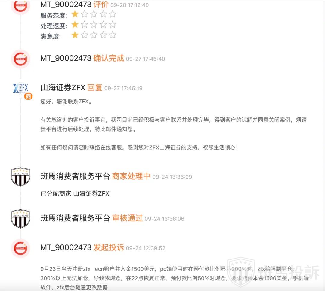 在意识到问题后,我立即将交易日志发送给ZFX,并进行投诉。然而,至今未收到ZFX的解决电话,反而遭遇了平台的强行关闭案例。更令人失望的是,ZFX在未解决我的问题的情况下,单方解释称我已认可这一处理。这种缺乏透明度和积极沟通的态度让人不禁对ZFX的服务产生质疑。交易日志作为交易员分析平台交易系统最重要和最可靠的工具,理应具有可信度,而ZFX并没有根据交易日志的证据,去解决该问题,反而依靠平台的权力,关闭“投诉”案例,关闭“交易日志”,这无疑是抹除证据的一种行为。我们知道,有的交易平台会在“账户风险保证金不足”的情况下,停止提供高杠杆,如把1000倍的杠杆降低为100倍等,这本质上是保证投资者的账户不被穿仓,而造成更多的平台和交易者的损失。但是,如果保证金充足的情况下,反而临时限制交易者的杠杆,这就有点过于干预交易者盈利的意味了。总之,ZFX平台随意变动交易杠杆的事件,不仅损害了投资者的直接利益,更是对整个交易秩序的挑战。希望通过此事件的曝光,能够促使ZFX等平台重视用户反馈,改善服务,确保每一位投资者的资金安全和权益得到保障。只有这样,才能在日益竞争激烈的市场中赢得投资者的信任。