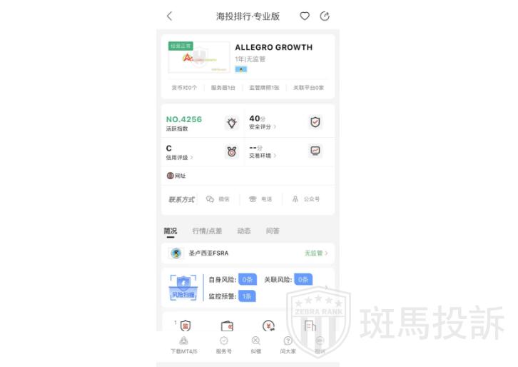Allegro Growth 目前有 0个监管,没有外汇牌照,不能做外汇保证金交易。