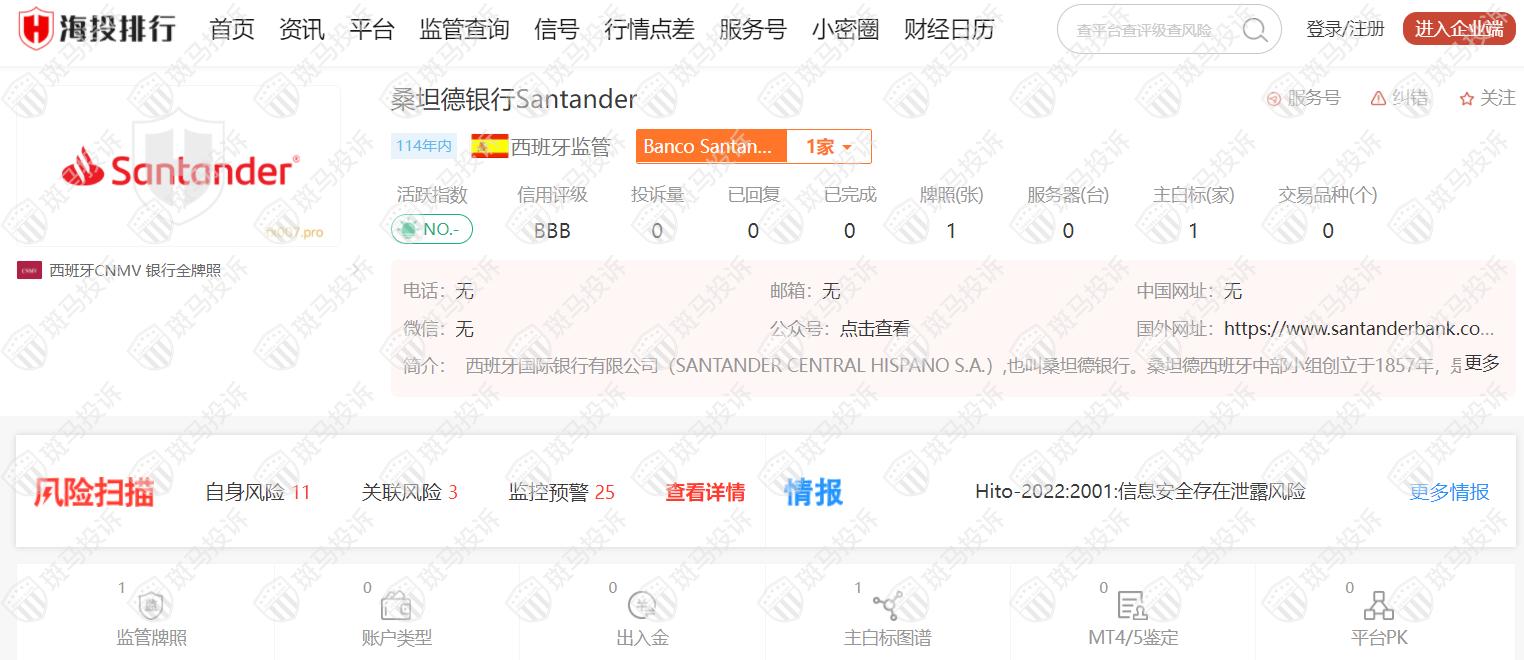 二、据海投排行上的Santander桑坦德银行信息: