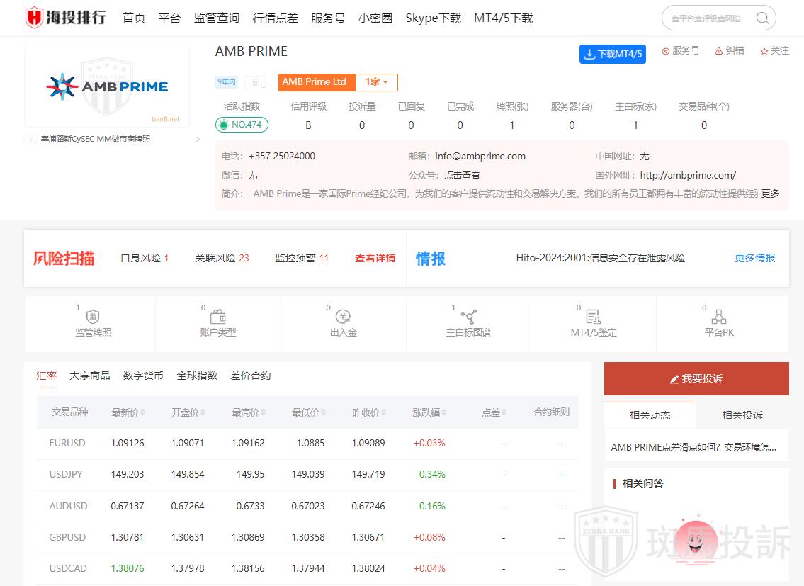 AMB Prime是一家总部位于塞浦路斯利马索尔的国际性主券经纪公司,为客户提供流动性和交易解决方案。从2020年8月17日起,该公司已被FXOpen UK收购,并以FXOpen EU的名义运营。AMB Prime获得塞浦路斯证券交易委员会的授权和监管,主要为外汇和差价合约行业的客户提供经纪解决方案。