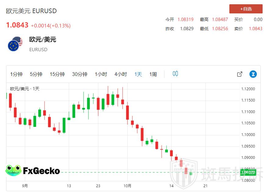 在欧元/美元(EUR/USD)方面,近期该货币对扩大跌幅至1.0811,并在1.0840附近盘整。部分疲软也可能与美国经济数据的强劲有关。美国9月零售销售强于预期,美联储制造业指数跳升,申请失业救济人数符合预期。