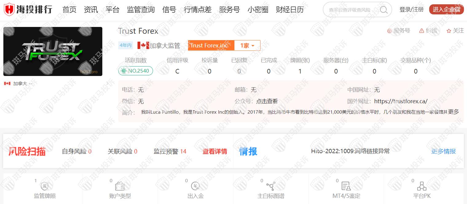二、据海投排行上的Trust Forex外汇外汇平台信息:
