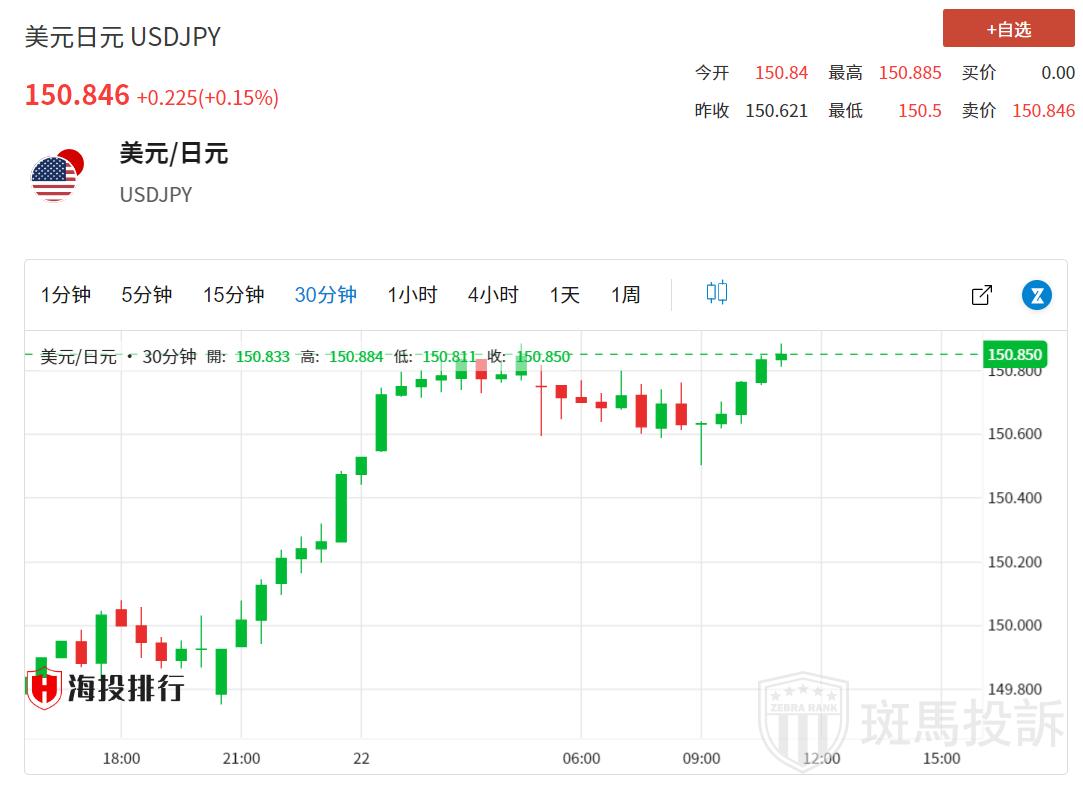 周二,日元吸引了一些买家,因为市场猜测政府可能会采取干预,尤其是在日元兑美元最近跌破150.00心理关口之后。