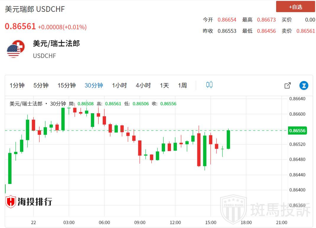美元/瑞郎回吐前日涨幅,周二欧洲时段早盘交投于0.8650附近。由于美元(USD)在美国国债收益率飙升后获得支持,周一美国国债收益率攀升超过2%,因此该货币对的这一下行空间可能受限。截至发稿时,2年期和10年期美国国债收益率分别为4.04%和4.20%。