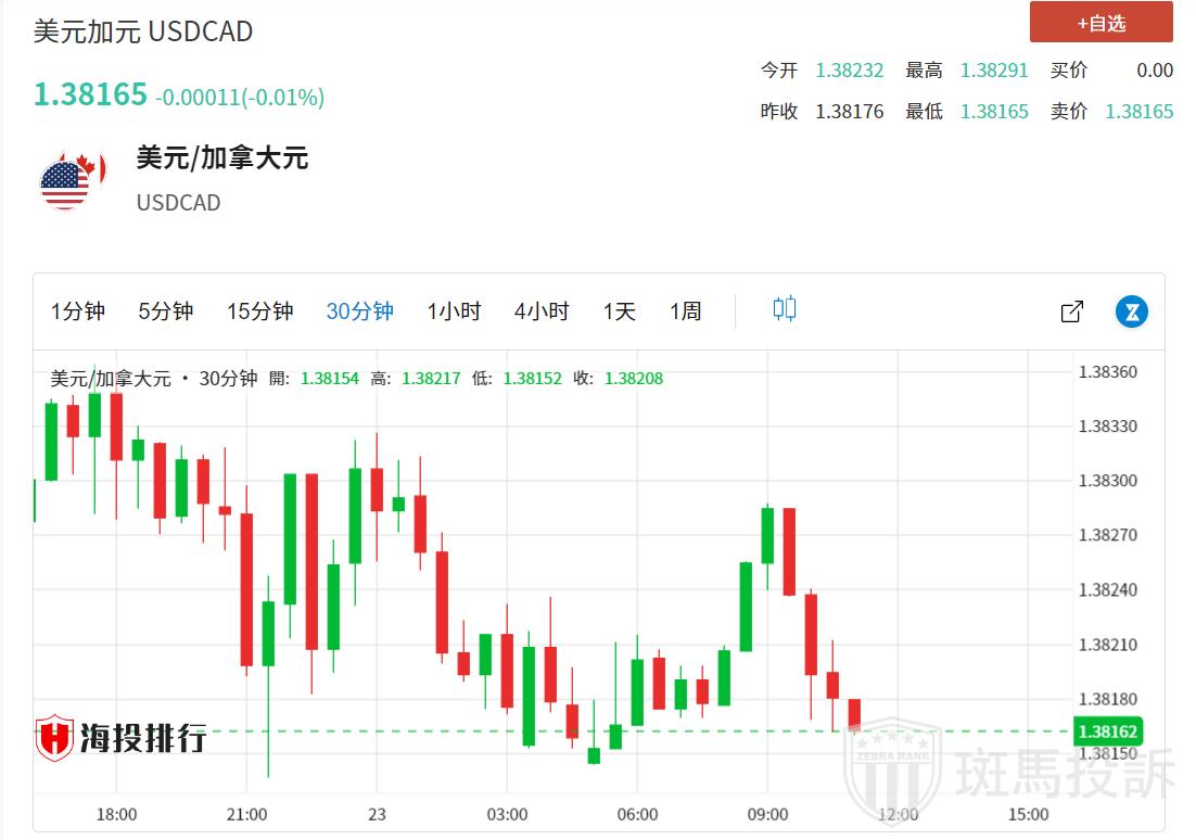市场在加拿大央行利率决议前采取谨慎态度,美元/加元持稳。