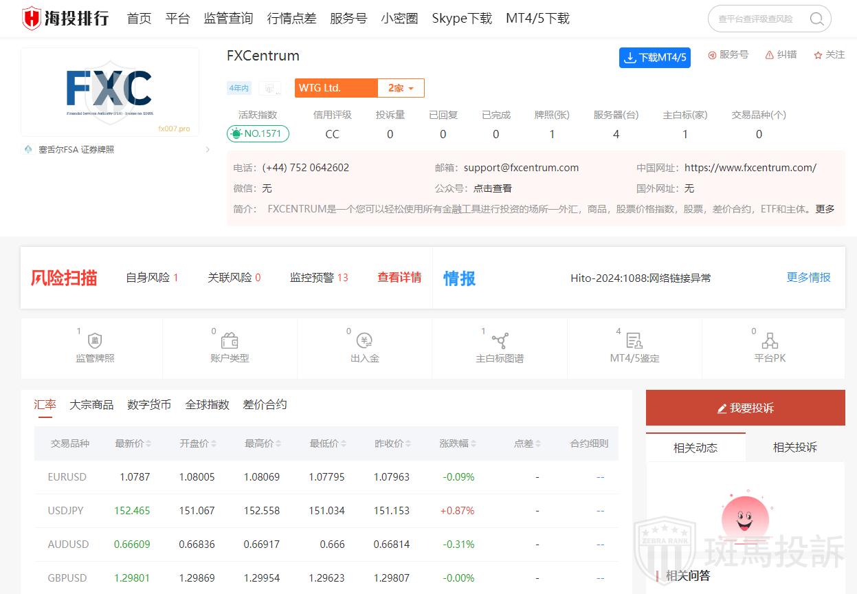 1.监管情况:FXCentrum受塞舌尔金融服务管理局的监管,这表明它在一个合法且透明的监管框架内运营。
