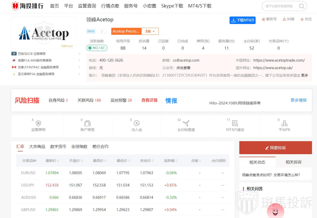 领峰(Acetop)是一家在亚太区内具有领导地位的经纪交易商,提供现货黄金、白银等投资服务。以下是关于该平台的详细信息: