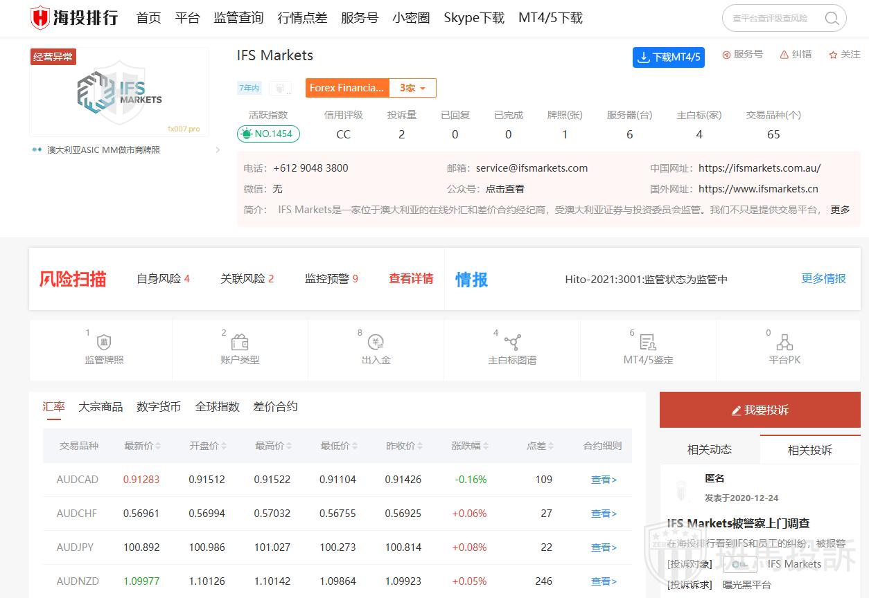 1.在海投排行看到IFS和员工的纠纷,被报警了,上海办事处(上海介未树影像设计有限公司)警察上门调查,大家注意吧,年底了随时可能被端了。