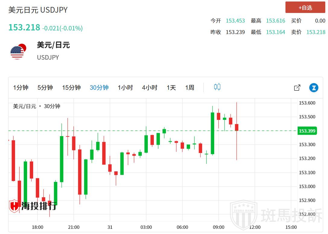 另一方面,153.85-153.90美元区域现在似乎已成为一个直接的强阻力。若持续走强,突破154.00整数关,则美元/日元有可能升向154.35-154.40阻力区,进而升向155.00心理关口。美元/日元可能会延续动能,最终攀升至155.20附近,测试7月下旬的震荡高点。
