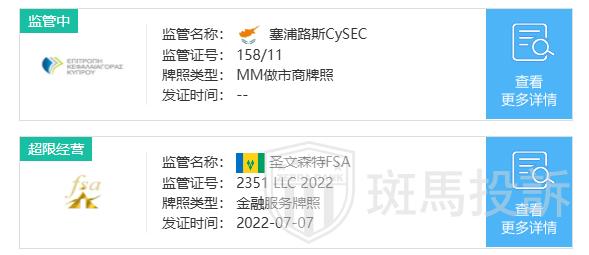 特理汇在多个国家和地区接受金融监管。例如,它受圣文森特FSA的监管,编号为2351 LLC 2022;在塞浦路斯受塞浦路斯证监会(CySEC)的监管,牌照编号为158/11。