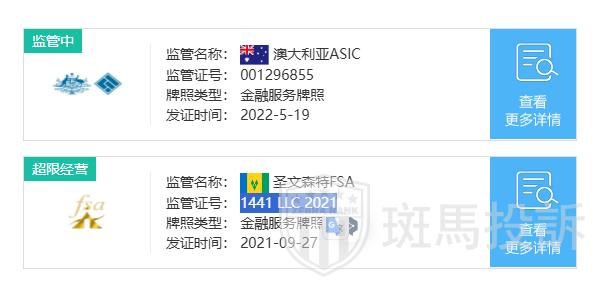 同时MYFX Markets还受圣文森特FSA监管,取得监管证号为1441 LLC 2021的金融服务牌照。