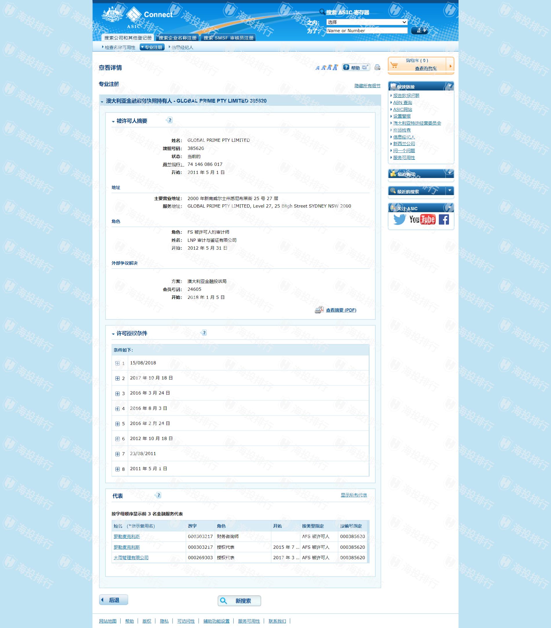 Global Prime受到澳大利亚证券和投资委员会(ASIC)的监管。ASIC是一个顶级的监管机构,对客户资金保护非常严格,这为Global Prime的客户提供了一个安全可靠的交易环境。