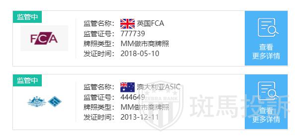 澳大利亚证券与投资委员会(ASIC),监管证号为444649,取得MM做市商牌照。