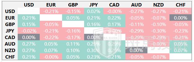 下表显示了日元(JPY)对所列主要货币今日的变动百分比。日元对纽元最弱。