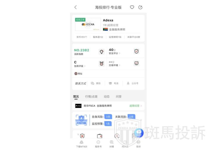 这家叫Adexa的平台,成立于2024年,全球活跃指数2381名,目前无监管,也没有外汇牌照,不能做外汇保证金交易,风险扫描显示11条风险,投资者资金安全无保障。