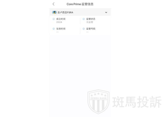 Core Prime 目前没有监管,没有外汇牌照。
