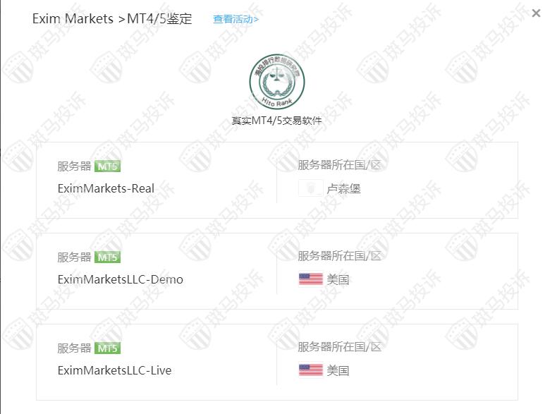 Exim Markets 平台服务器有3台,两台在美国,一台在卢森堡。