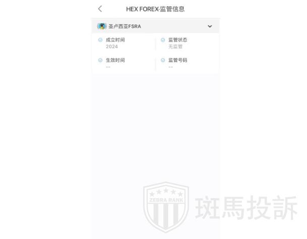 HEX FOREX 目前没有监管。