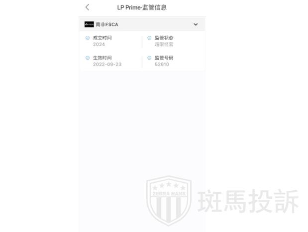 LP Prime目前有南非FSCA 1个监管。