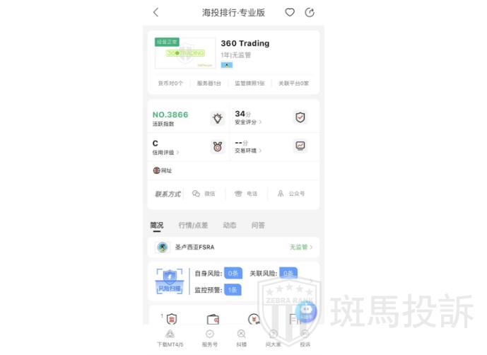 这家叫360 Trading的平台,成立于2024年,全球活跃指数3866名,目前无监管,也没有外汇牌照,不能做外汇保证金交易,风险扫描显示1条风险,投资者资金安全无保障。