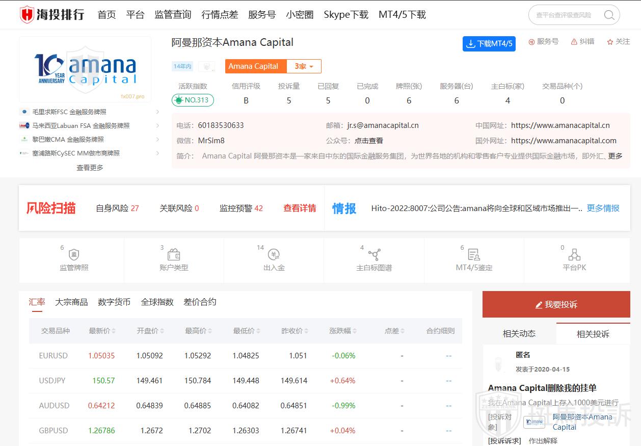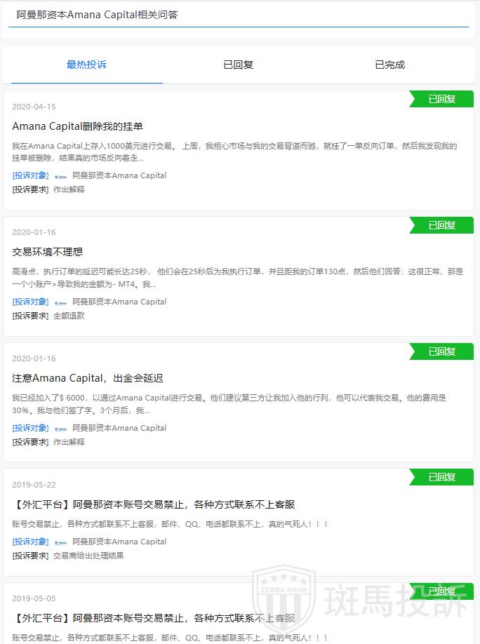 1.有用户报告称,阿曼那资本平台无法出金,并在尝试提现时被冻结资产,平台要求在期限内存入相同金额才能提现,否则会每日扣除金额。