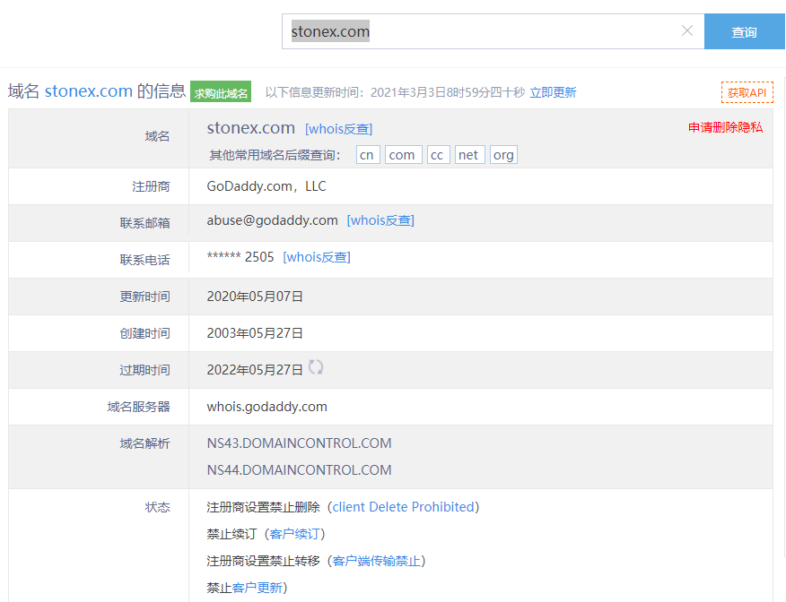 主白标关系显示,StoneX平台只有一家经营正常的嘉盛平台,从他们的服务器地址,网站的模板来看,都可以看出来相似的地方。