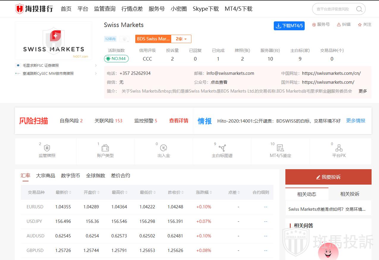综上所述,Swiss Markets是一个受监管的、提供多种交易选择的经纪商,但也存在一些限制和不足。建议潜在投资者在开户前仔细考虑这些因素。
