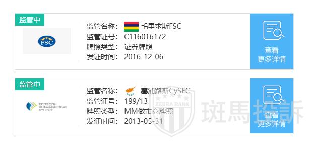 Swiss Markets受多家金融监管机构监管和许可,包括塞浦路斯证券交易委员会(CySEC)和毛里求斯金融服务委员会(FSC)。在CySEC法规监管下,交易者的资金100%与公司资金隔离,并能受益于高达20,000欧元的投资者赔偿基金(ICF)。