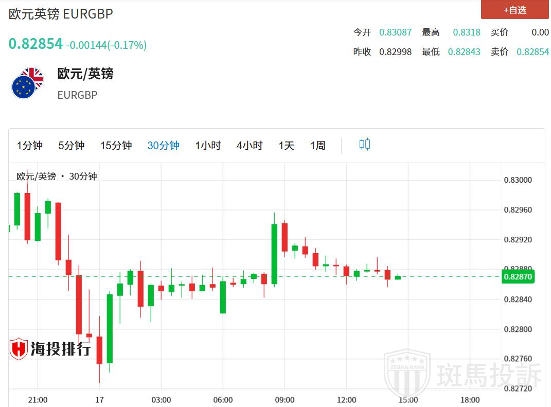 周一欧洲时段早盘,欧元/英镑在0.8305附近保持上涨