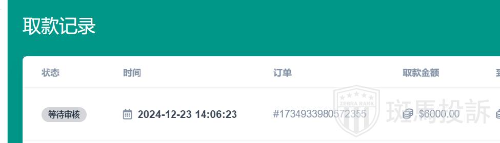 目前,该投资者账户中仍有2.4万美金,其中6000美金处于出金审查中,账户余额为1.7万多美金。(账户截图来源于斑马投诉网,经授权发布)