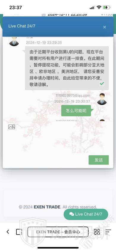 在同一时间段,另一位Exen投资者也反馈了无法出金的情况。针对出金问题,Exen