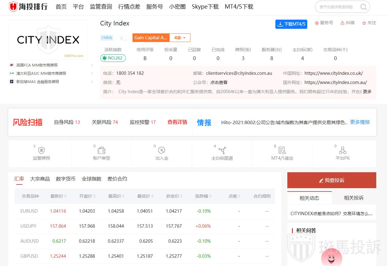 City Index是一家成立于1983年,总部位于英国伦敦的外汇经纪商。这家公司历史悠久,在全球范围内拥有广泛的客户基础,并以其稳健的服务质量和专业的投资环境赢得了众多投资者的认可。City Index提供多种交易产品,包括外汇、指数、商品等,其中外汇交易提供超过70种货币对供投资者选择。此外,该公司还提供杠杆交易服务,最高可达500:1,这使得投资者可以利用较小的资金量获得更高的收益,但同时也伴随着风险的增加。