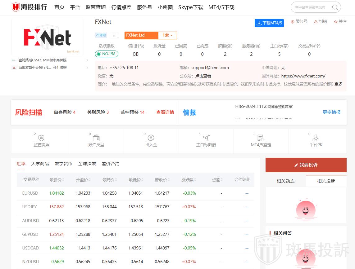 综上所述,FXNet是一家受到塞浦路斯CySEC监管的正规外汇经纪商,提供多种交易产品和教育资源。投资者在选择时应进一步调查和比较。